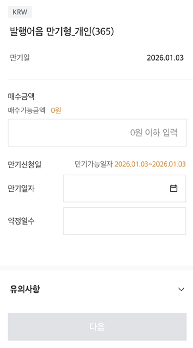 5) 매수화면에서 약정기간과 예치금액을 확인하고 가입합니다.