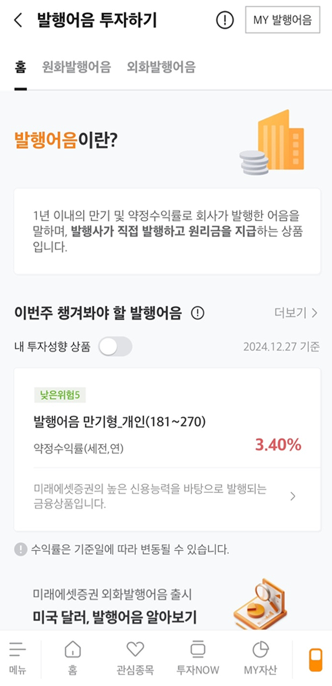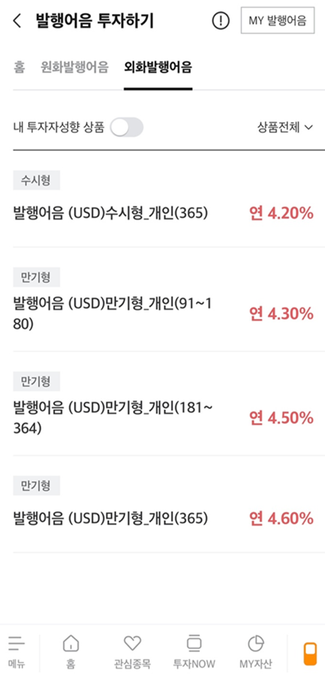 3) 발행어음 홈 화면에서 외화발행어음을 선택합니다.