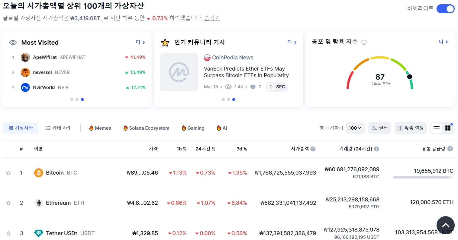모든 자산 및 거래소 정보를 한눈에! 코인마켓캡