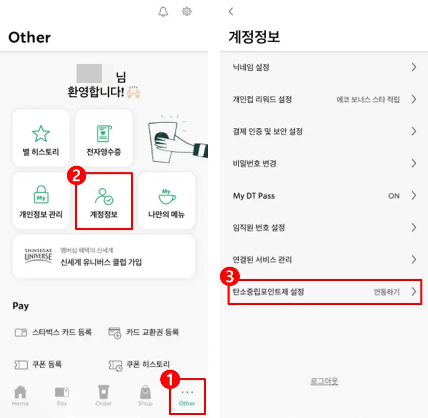 스타벅스는 탄소중립실천포인트를 스타벅스 앱에서 연동을 해야합니다. 신청은 5분도 안걸리니 쉽게 따라하실 수 있습니다.