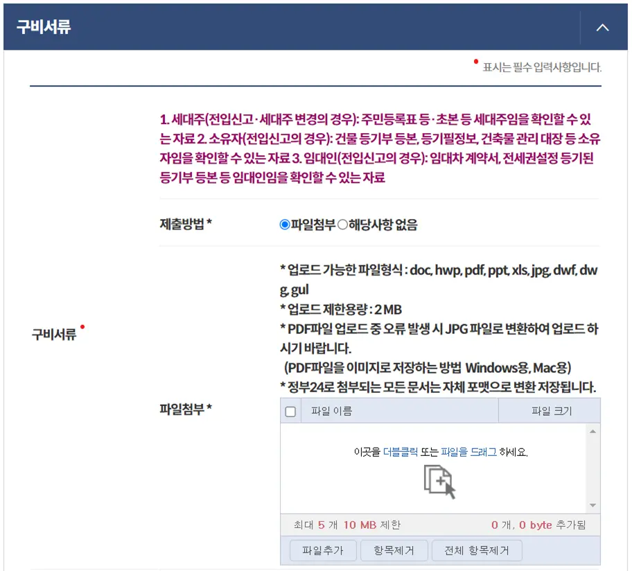 2. 소유자(전입신고의 경우): 건물 등기부 등본, 등기필정보, 건축물 관리 대장 등 소유자임을 확인할 수 있는 자료