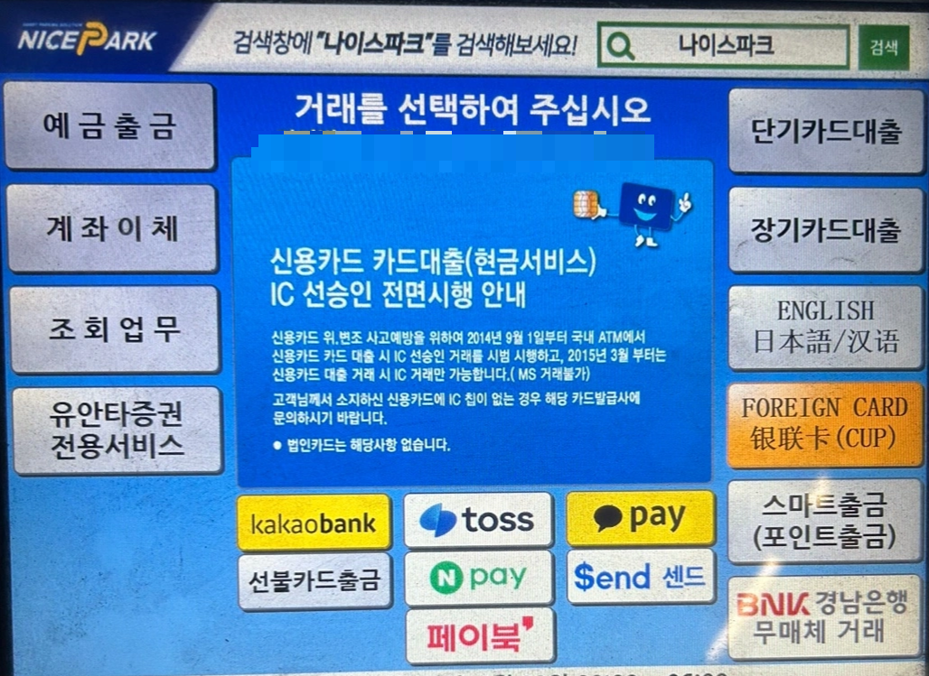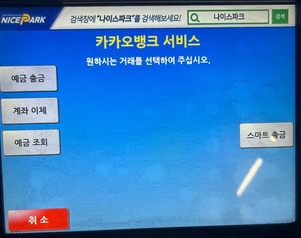 2) ATM으로 가서 첫 화면 내 카카오뱅크 누르고 스마트출금 선택