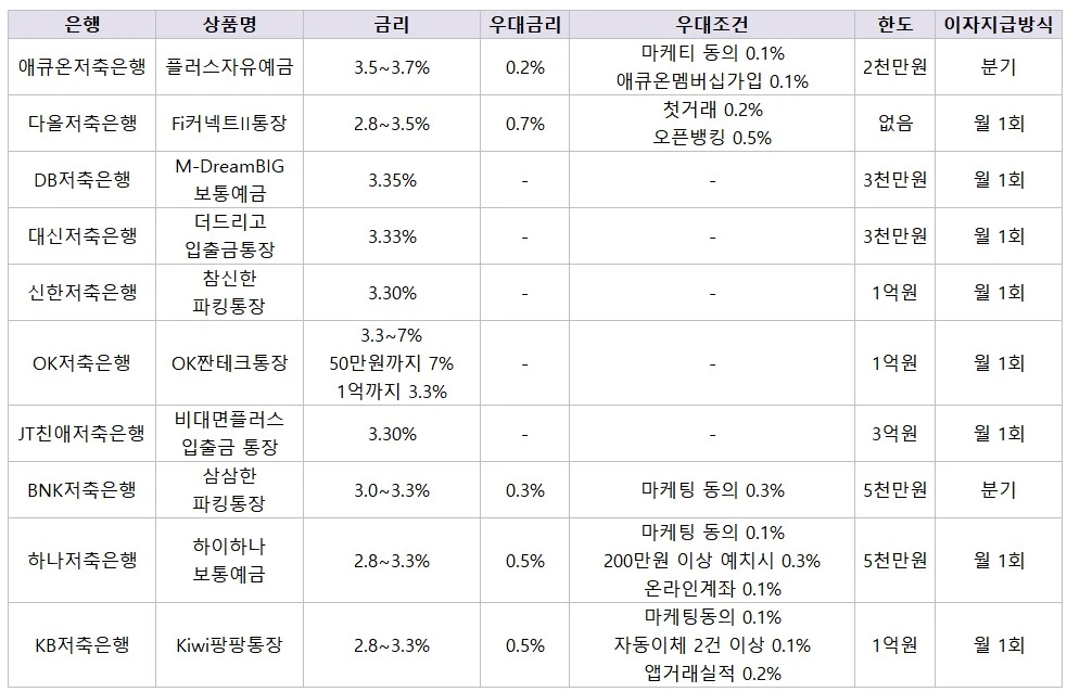 아래 리스트는 금리 순, 최대 금리(우대금리) 받기 쉬운 순으로 정리해봤으니 상품 고려시 참고 바랍니다.