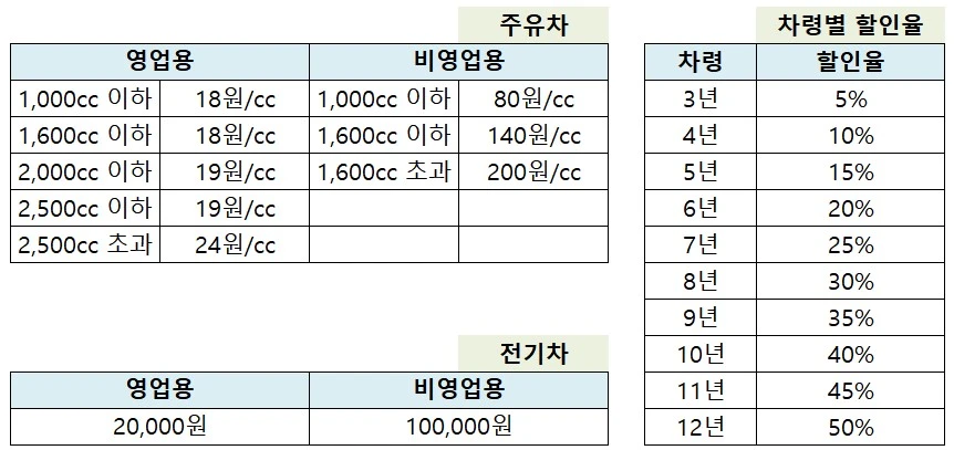 ※ 전기차는 배기량이 없으므로 새롭게 지정된 단일세율로 계산함