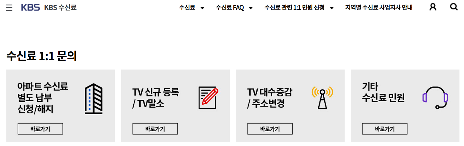 1) KBS 홈페이지에 로그인 → About KBS → 수신료 → 수신료 1:1 문의 → 해당 사항 신청