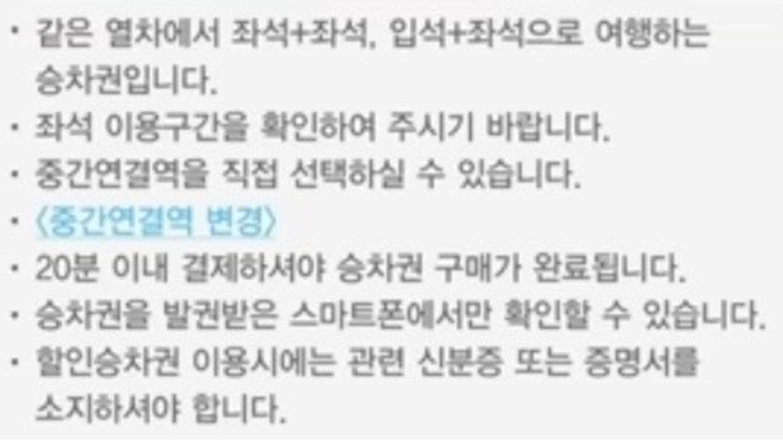 예약대기 외에 자유석(운임의 5% 할인), 입석(운임의 15% 할인), 입석+좌석을 알아보는 방법입니다.